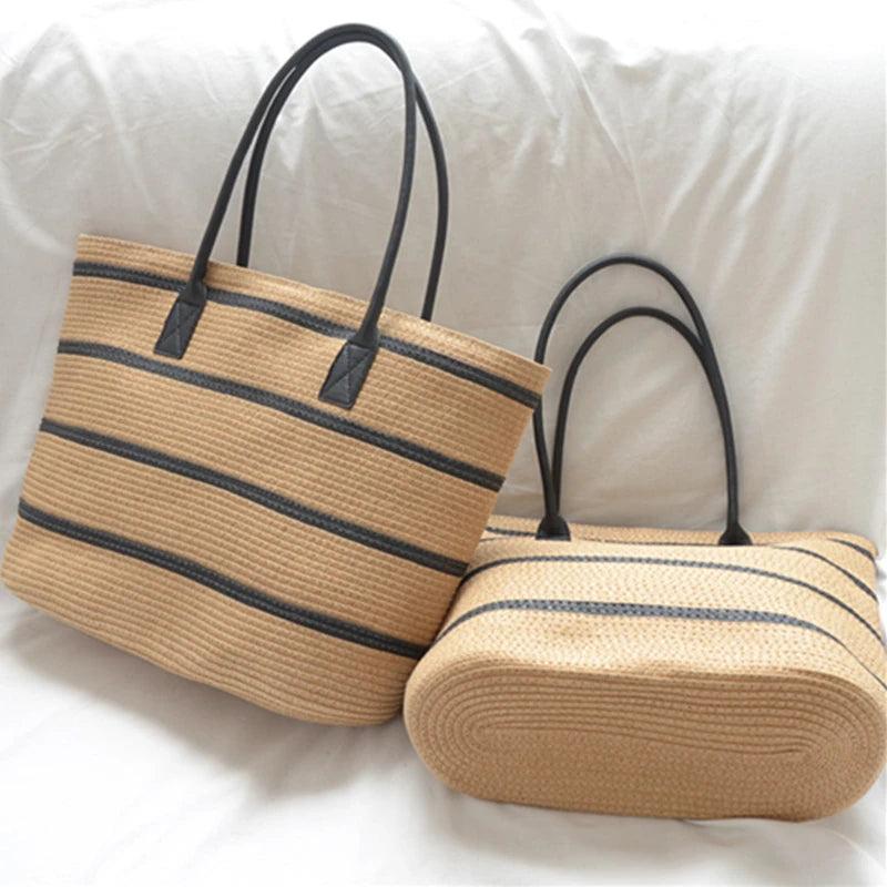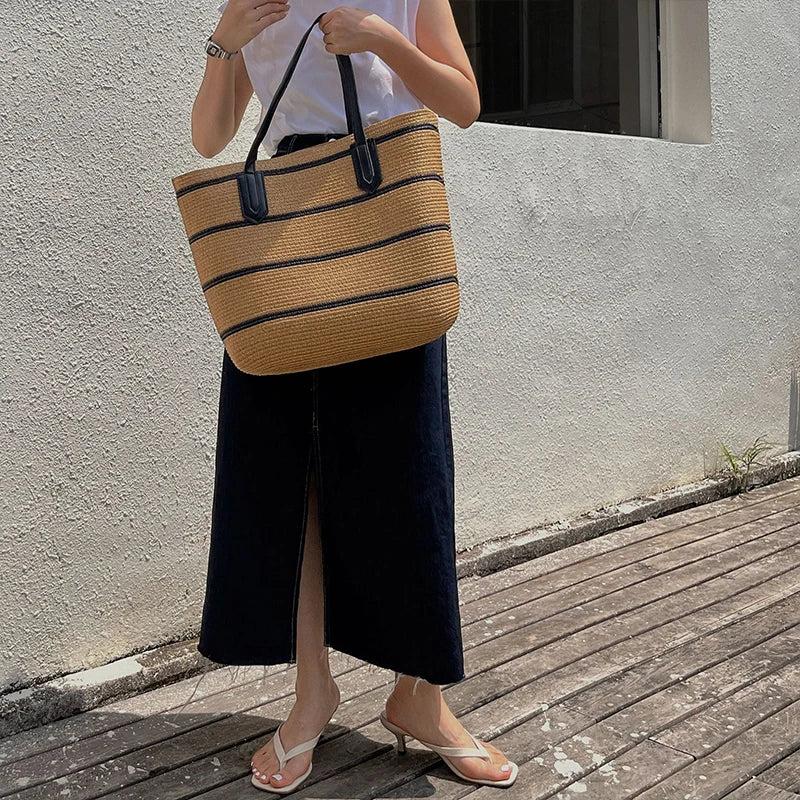 Summer Straw Bag Women Stripe Totes Large Capacity Beach Handbags
