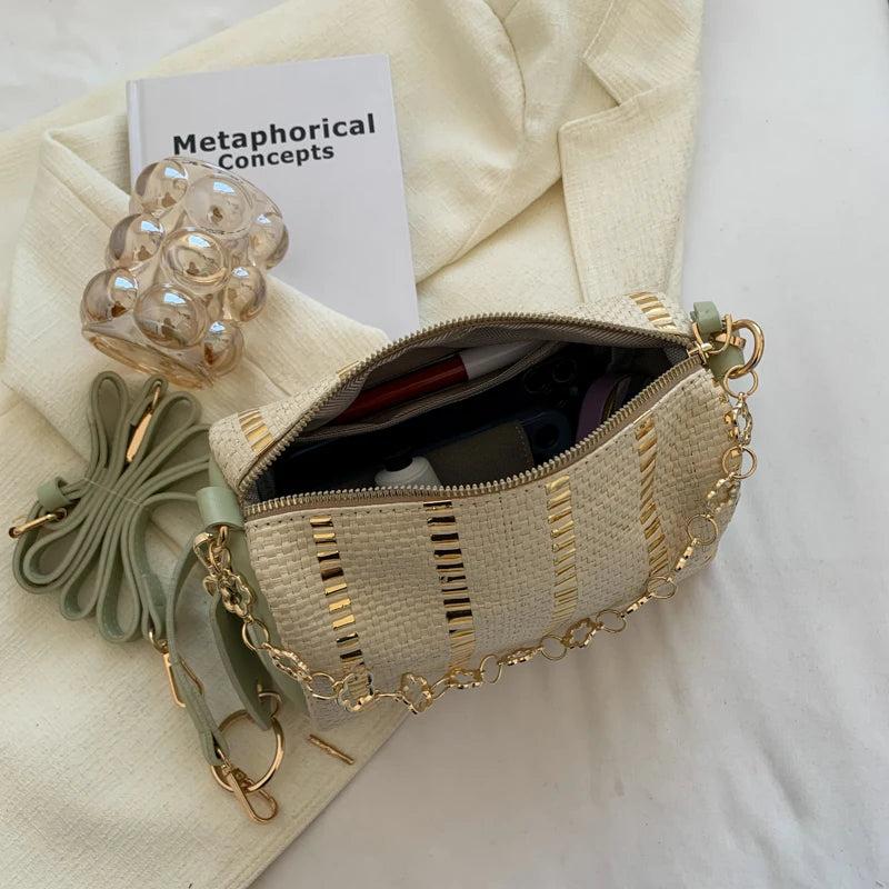 Summer Straw Shoulder Bag with Pu Leather Crossbody