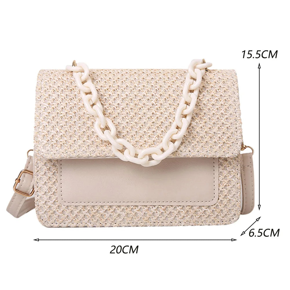 Summer Straw Square Bag Women Handbags Woven Hobo Beach Bag Acrylic Chain PU
