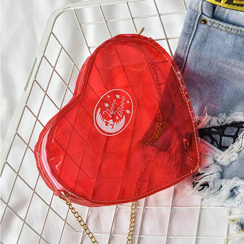Summer Women Shoulder Bags PU Leather Laser Metal Chain Beach Bag Heart Shape