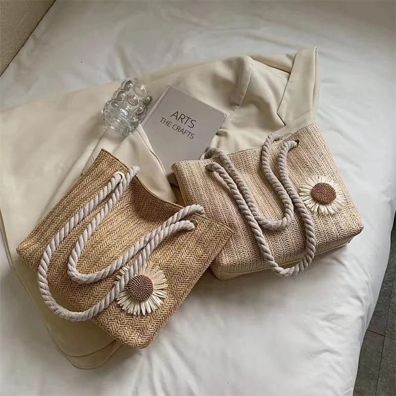 Sunflower Women's Shoulder Bag Large-capacity Straw Woven Handbag