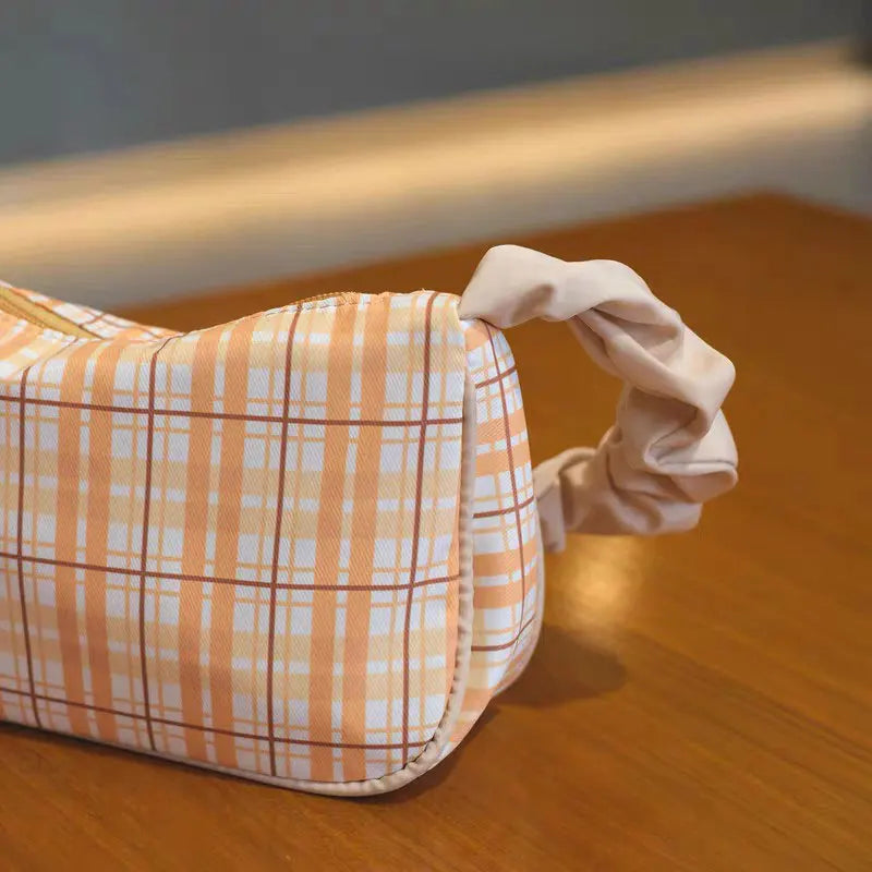 Sweet Plaid Nylon Shoulder Bag Top-handle