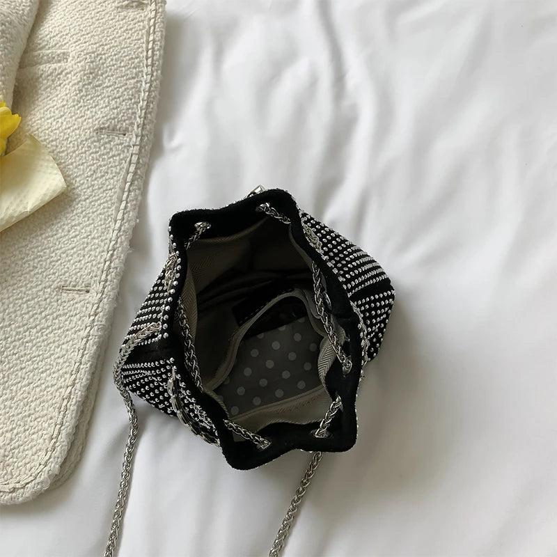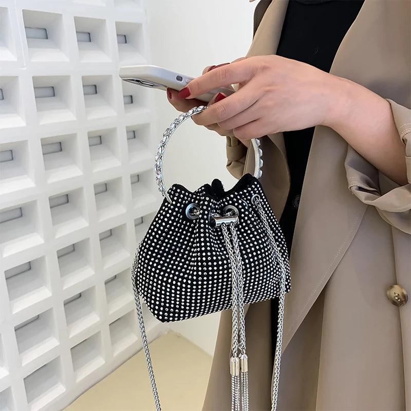 This stylish handbag is perfect for a night out or special occasion. It can be used as a clutch purse or a small crossbody bag.