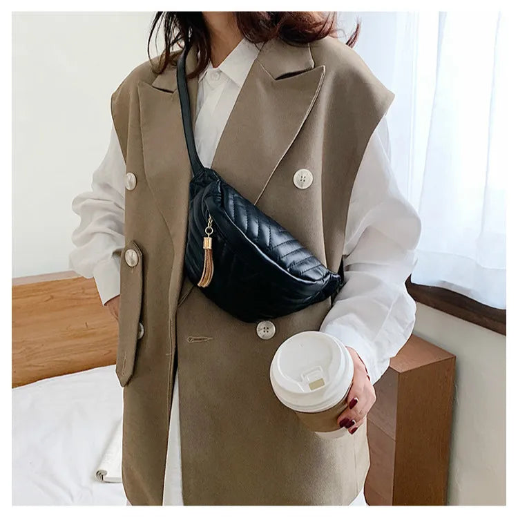 Stay stylish with this PU leather crossbody bag featuring tassel details. Perfect for casual outings or everyday use.