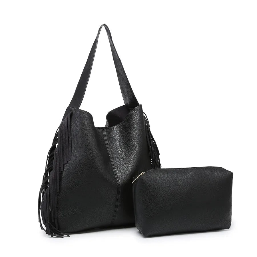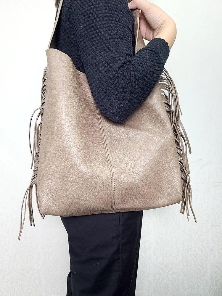 This stylish bucket bag features tassels and is made of high-quality PU leather. It can be used as a shoulder bag or a tote bag, perfect for everyday use.