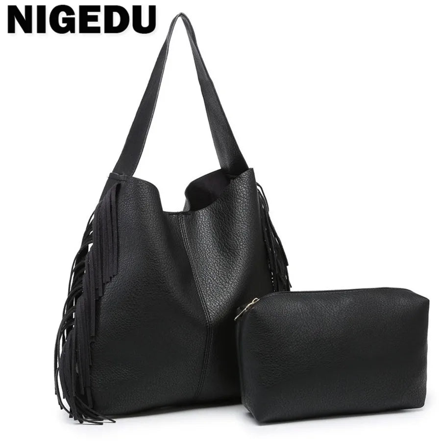 Tassels Bucket Bag Women PU Leather Shoulder Bag Ladies Totes Bolsa