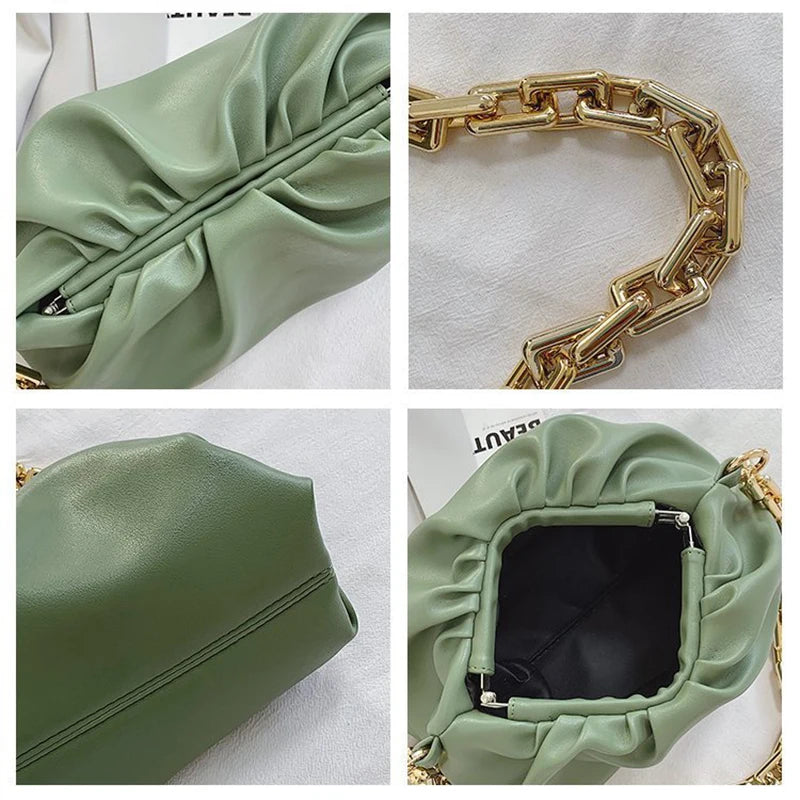 Thick Chain Cloud Bag Soft Leather Women Shoulder Bags Purse Clutch Bags