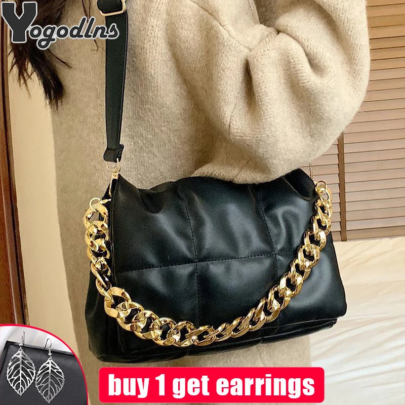 Thick Chain Totes Shoulder Bag Women Handbag Winter Crossbody Bags