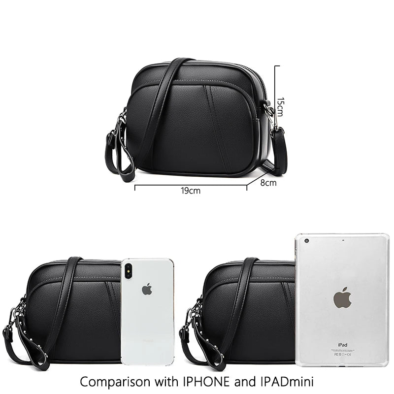 This women's crossbody bag features three layers for high capacity storage. Made of PU leather, it is a stylish and practical handbag for everyday use.