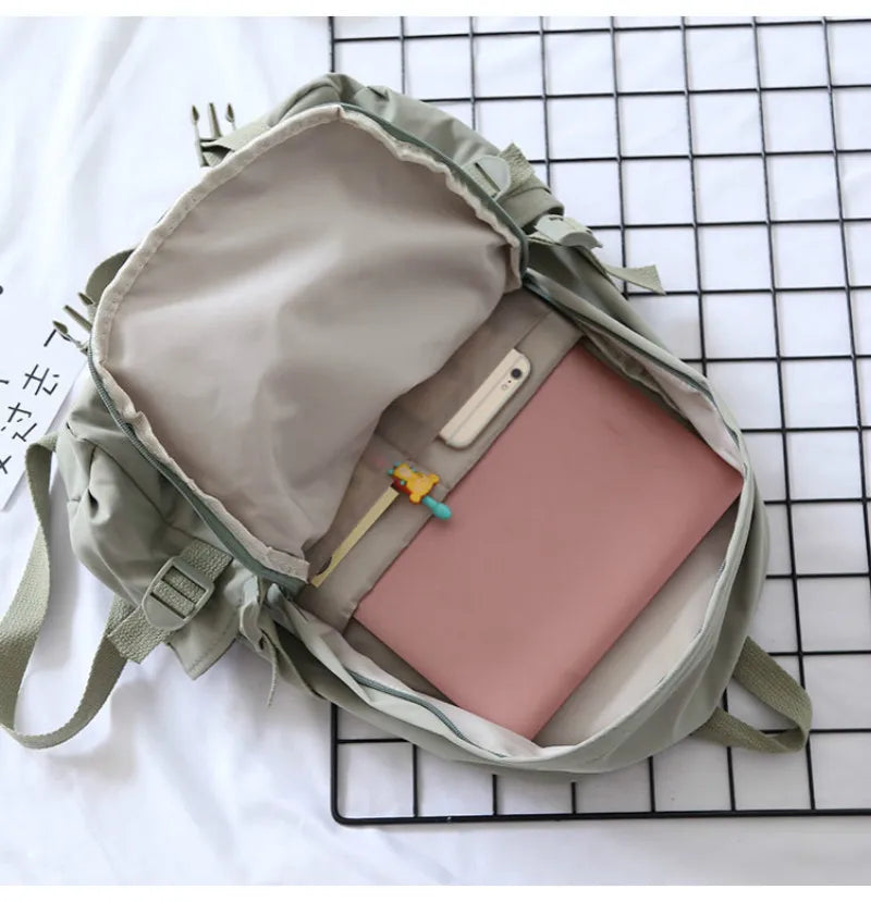 This backpack is designed for high school students and young women, featuring a stylish and practical design.