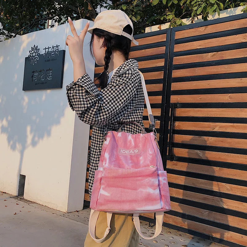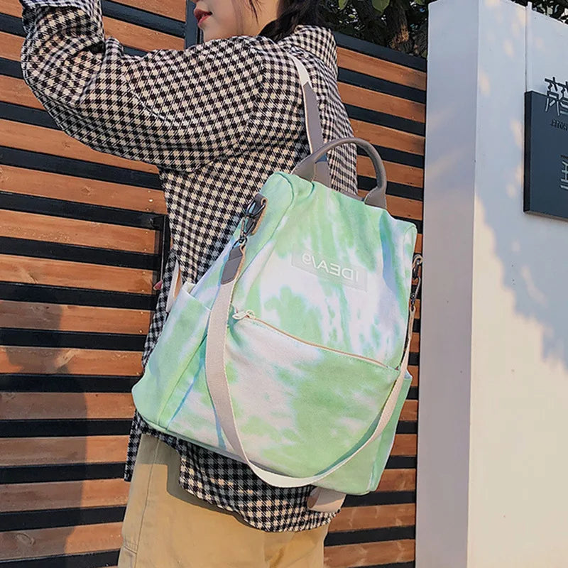 Tie-Dye Canvas Backpack for Women School Girls Travel