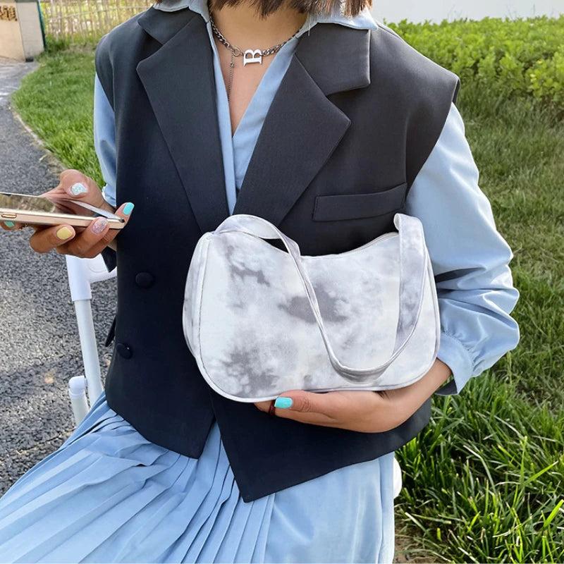 This stylish women's shoulder underarm bag is perfect for travel or casual outings. Made of high-quality polyester material, it features a tie-dye design that adds a trendy touch to your look.