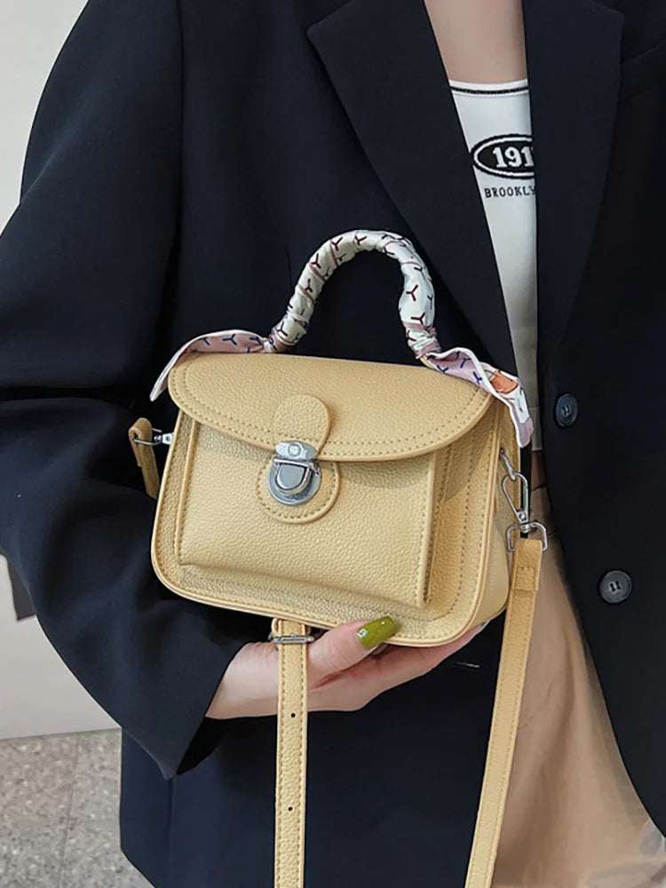 Elegant scarf handbag designed for women. Made of high-quality PU leather, this crossbody bag features a top handle for added convenience. Perfect for any occasion.