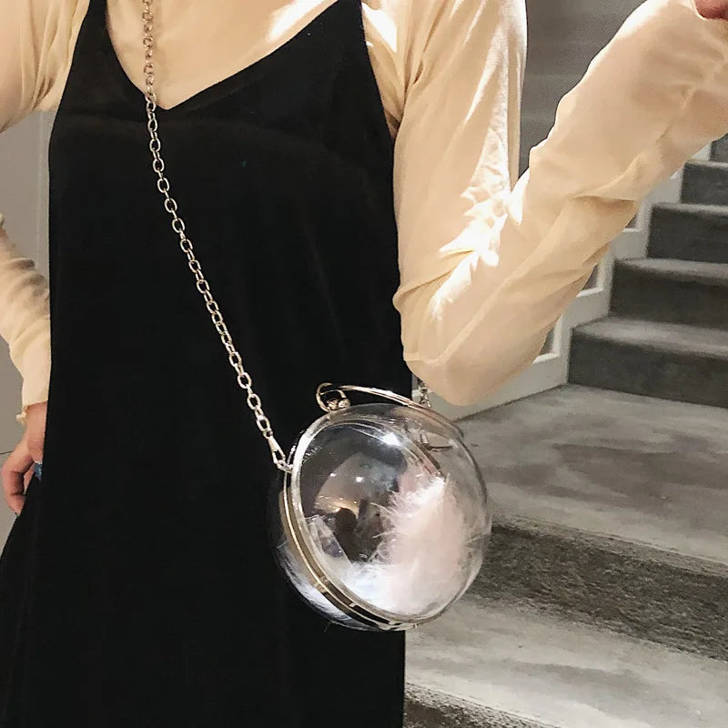 Transparent Round Ladies Handbags Silver Chain Shoulder Bag