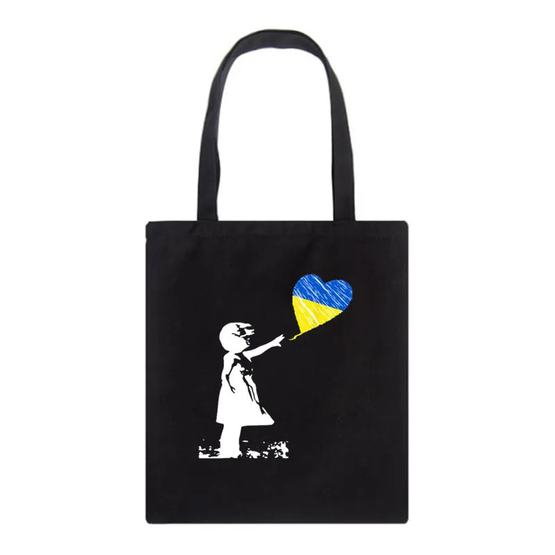 Ukraine Love Graph Print Canvas Shoulder Bag - Large Capacity Ladies Handbag