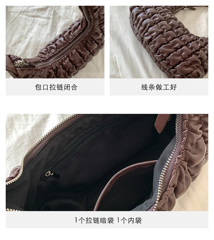 This pleated shoulder bag is perfect for women on the go. It is stylish and functional, making it a great addition to any outfit. The underarm design allows for easy access to your essentials.