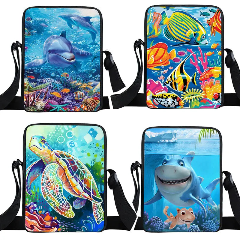 Underwater Turtle Fish Dolphin Shoulder Bag Teen Girl Messenger Cross Travel