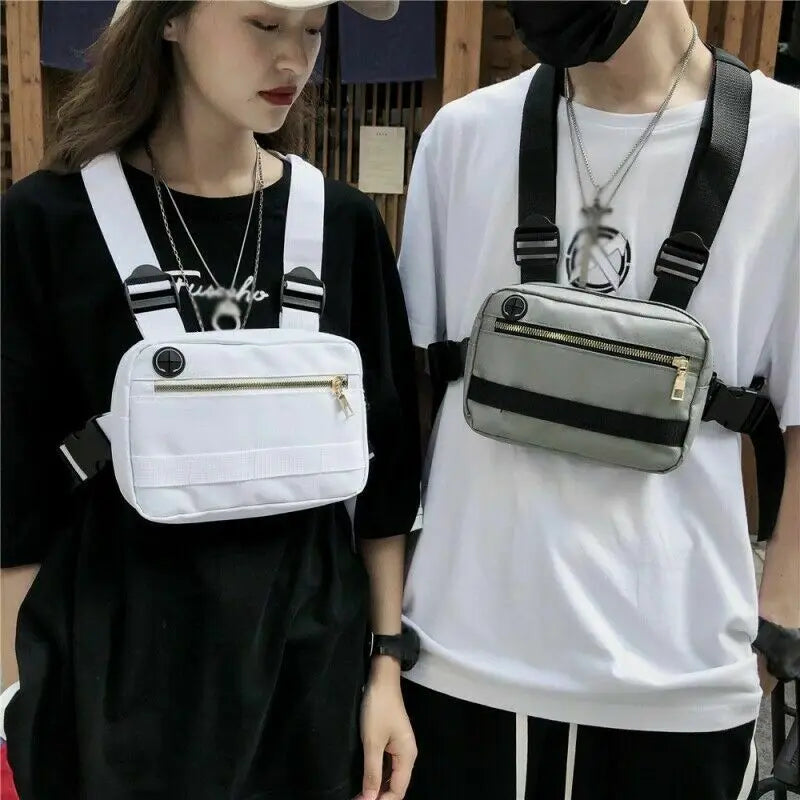 Stay stylish and hands-free with this canvas chest bag perfect for hip hop streetwear enthusiasts. The bag is casual and adjustable, making it a versatile accessory for everyday use.