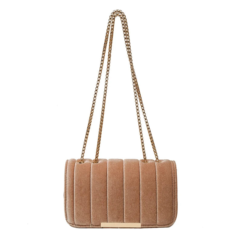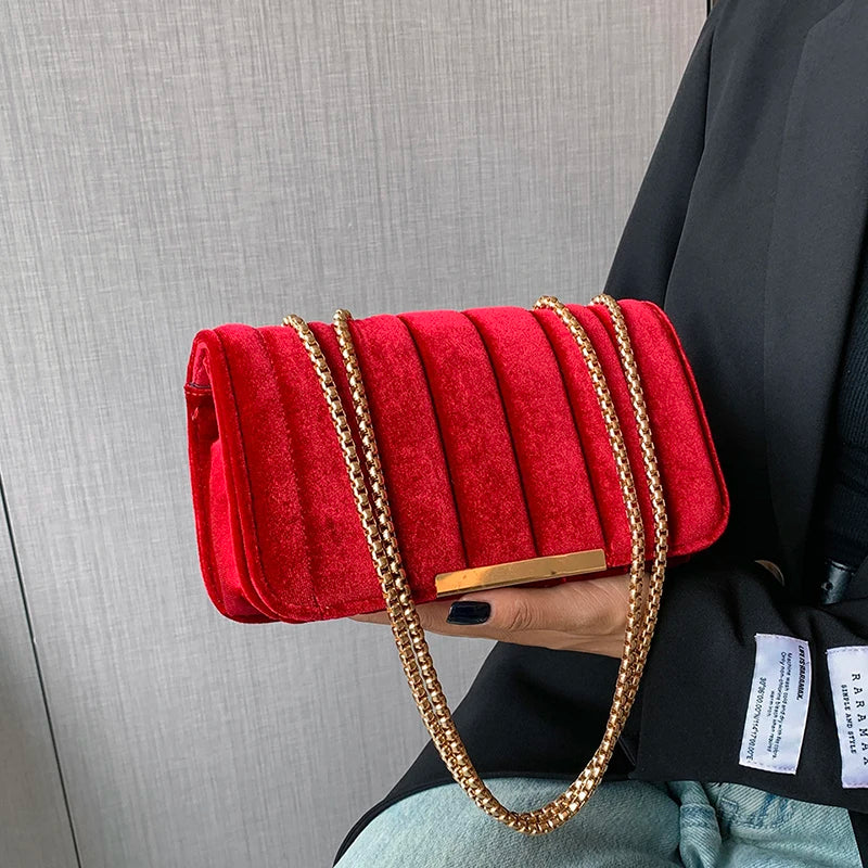 Stay trendy with this high-quality velvet chains shoulder bag that exudes a luxurious texture perfect for autumn and winter seasons.