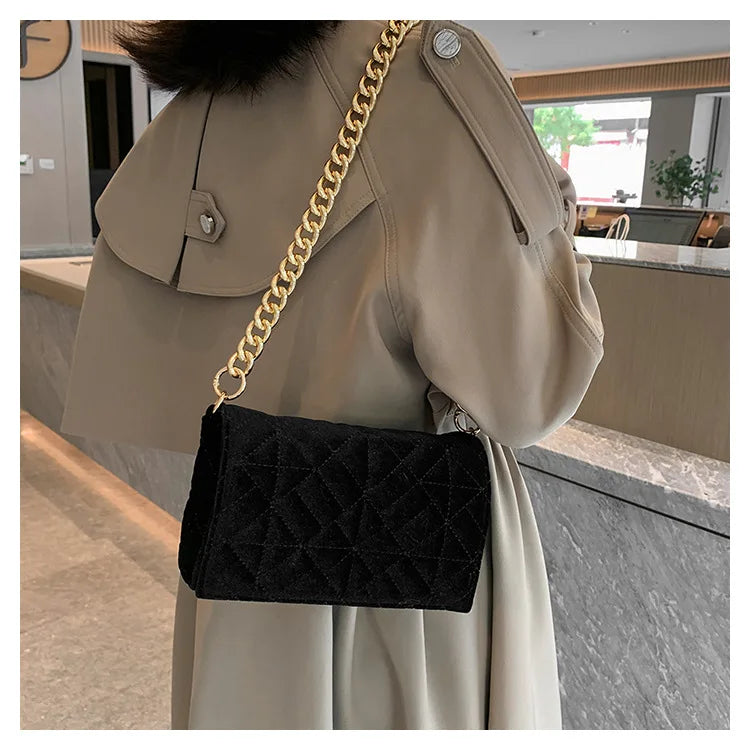 Velvet Shoulder Handbag Famous Women All-match Underarm Crossbody Bag