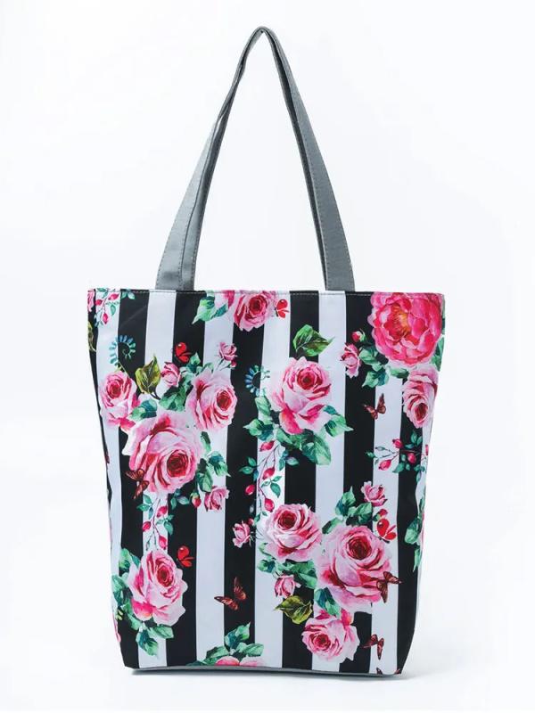 Vertical Stripe Flower Bee Pattern Printed Handbags Well Travel Bag