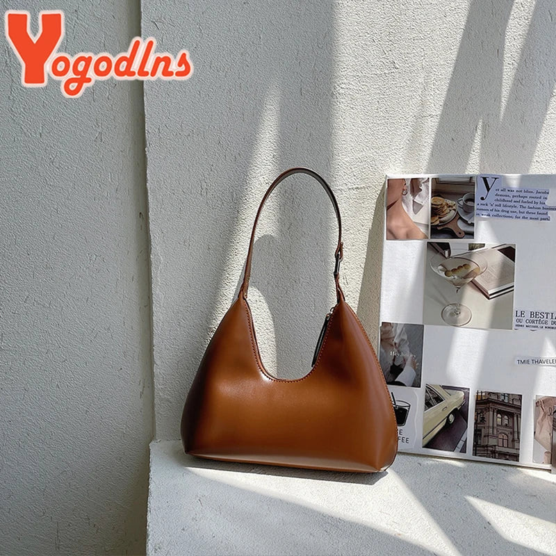Vintage Armpit Bag Women Half-moon Shoulder Bag PU Leather Handle Bag Totes