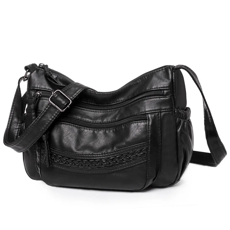 Stay stylish with this soft and vintage-inspired brown leather shoulder bag. Made of high-quality PU leather, this crossbody purse is perfect for everyday use.