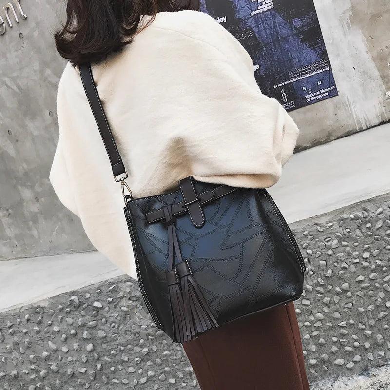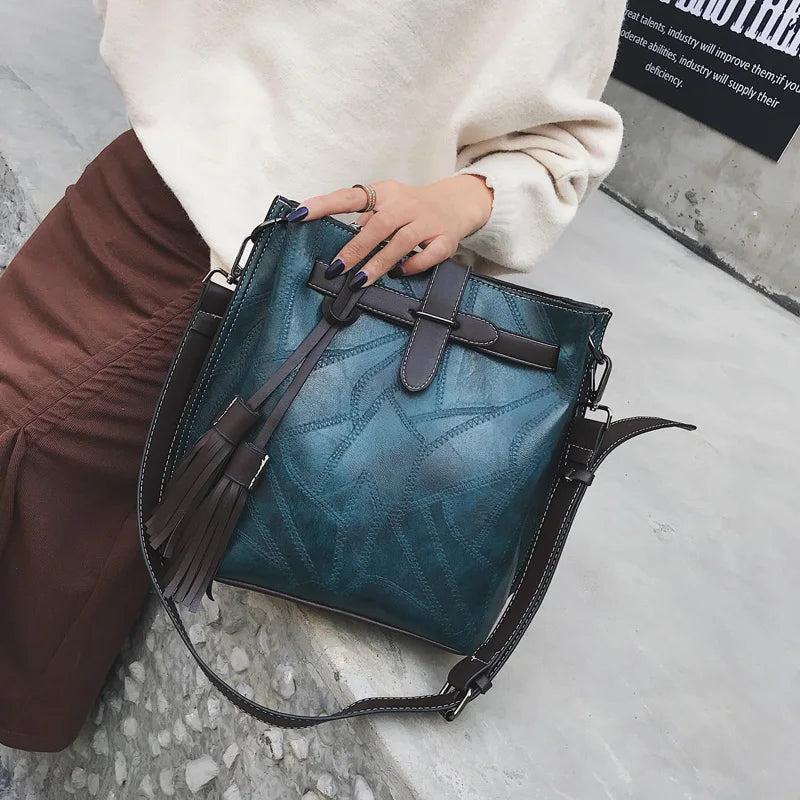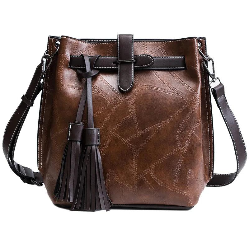 Vintage Bucket Bags Pu Leather Shoulder Bag Ladies Handbag