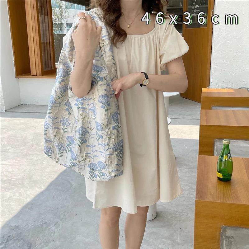 Vintage Canvas Shoulder Bag Flowers Jacquard Cotton Fabric Grocery Handbag