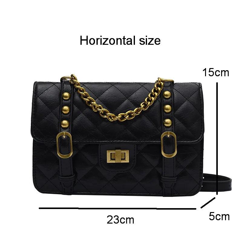 Vintage Chain Shoulder Bag PU Leather Diamond Lattice Messenger Bag