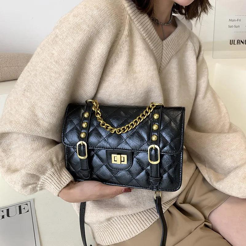 Elegant and stylish flap bag for women with a detachable chain strap. Made of high-quality PU leather featuring a diamond lattice design.