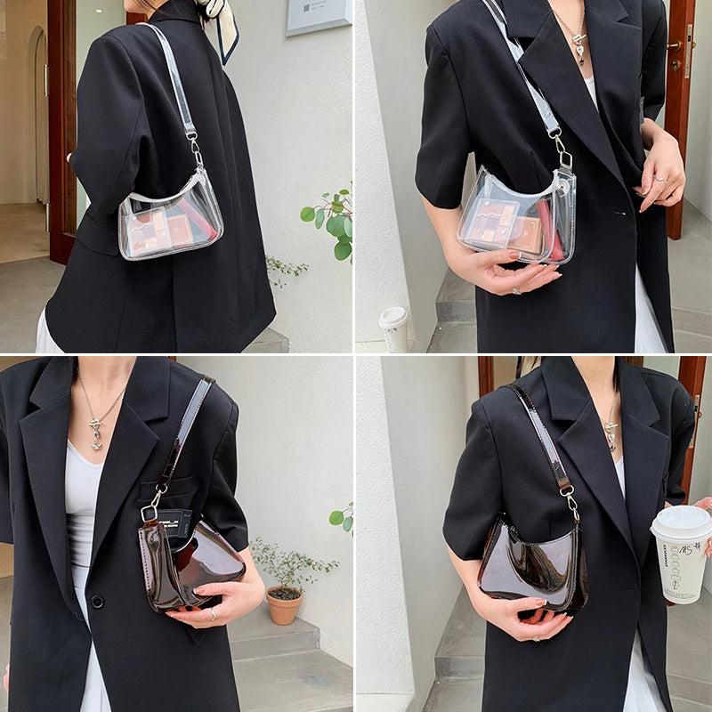 Vintage Clear Jelly Underarm Bag Women Handbag Purse Shoulder Bag
