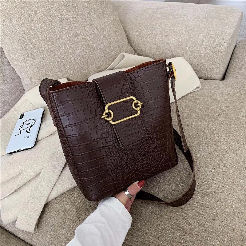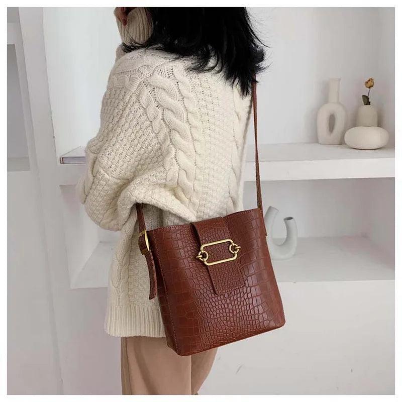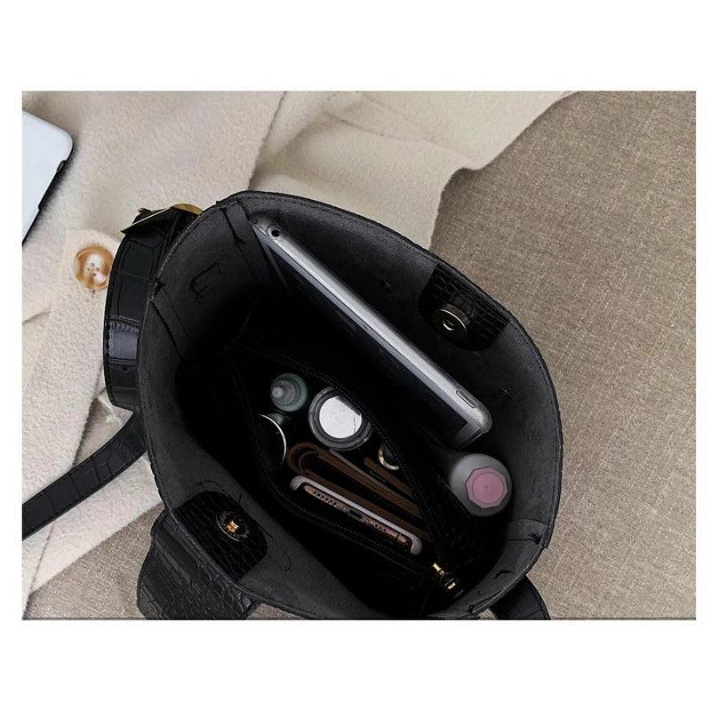 Vintage Crocodile Bucket Bag Crossbody Composite Solid Shoulder Bags