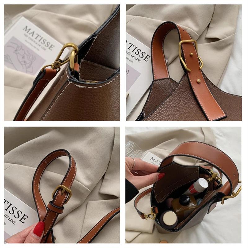 Vintage Crossbody Bucket Bag Leather Handbag Purse