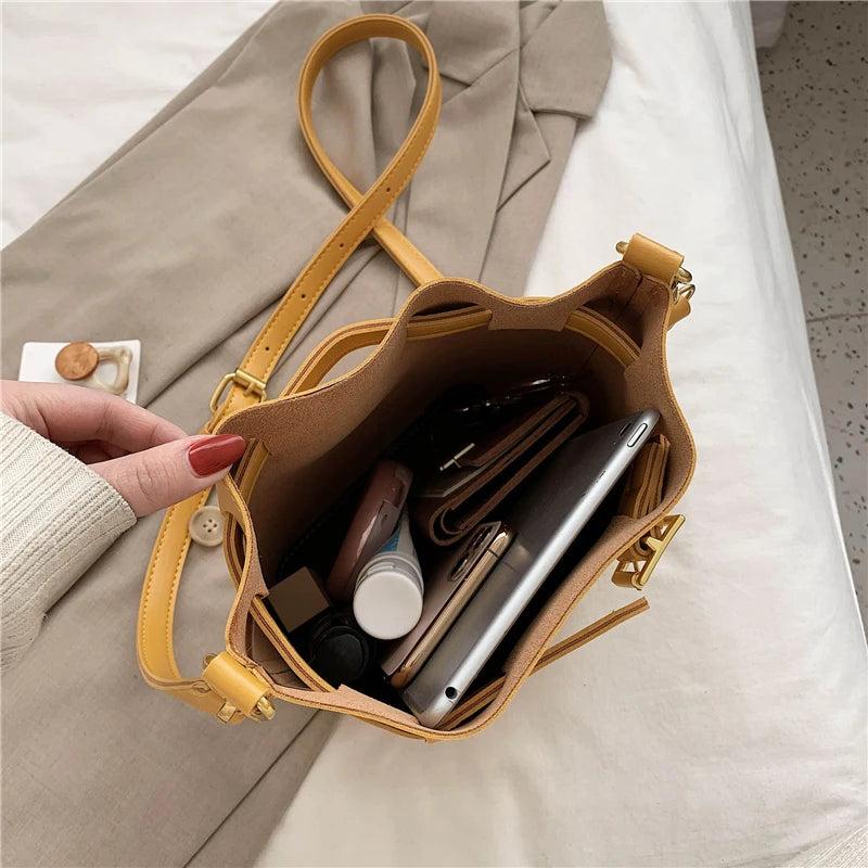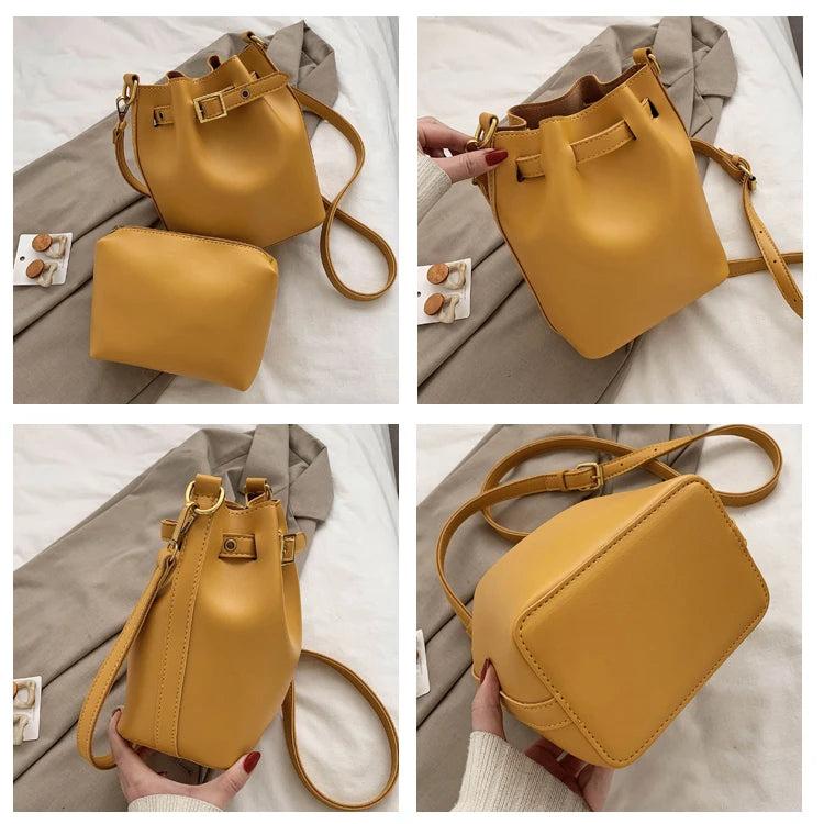 Vintage Crossbody Set Leather Shoulder Bag Lady Bucket Bag