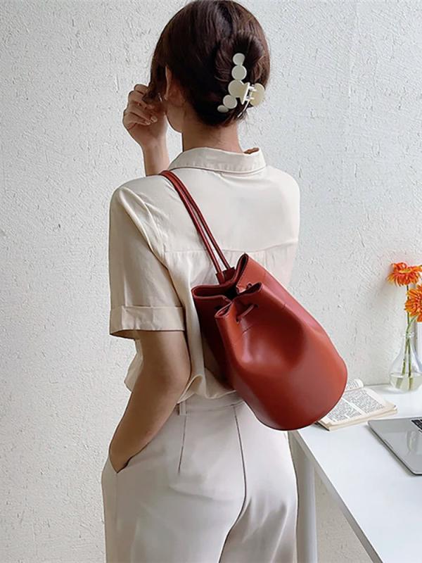 Vintage Crossbody Shoulder Bag Soft Leather Bucket Backpack