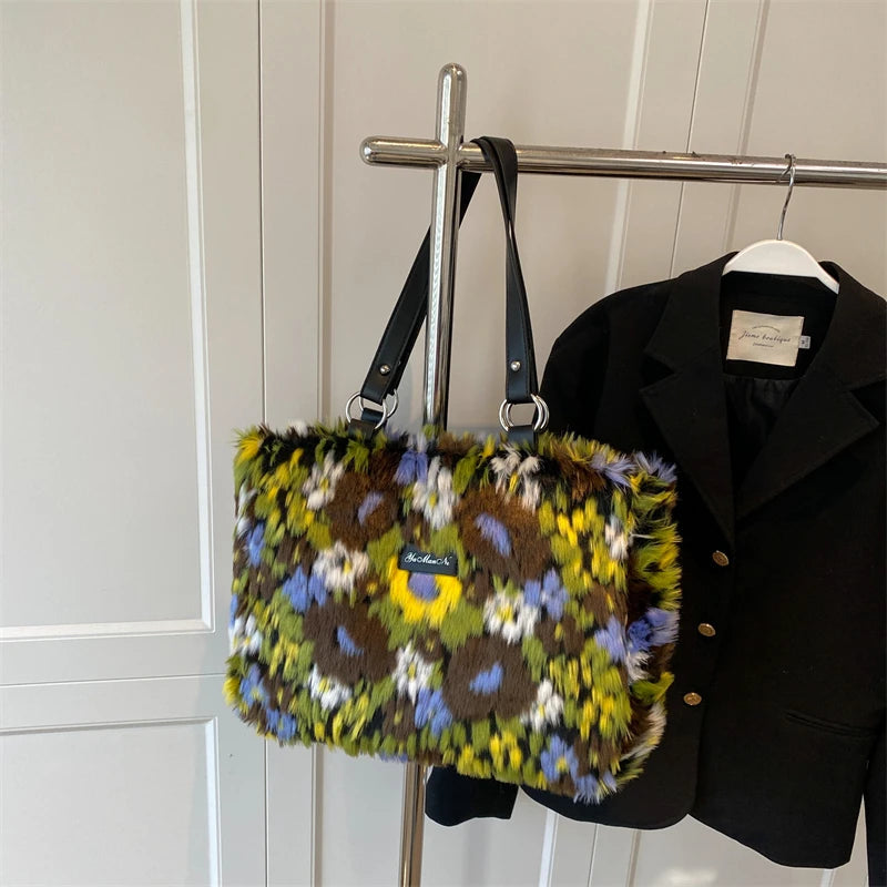 Vintage Faux Fur Totes Handbags Purses Women Shoulder Bags