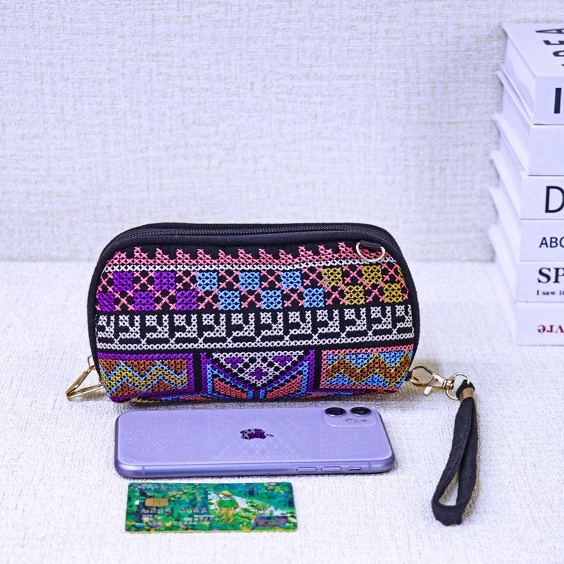 Vintage Geometric Embroidered Shoulder Bag Travel Pouch