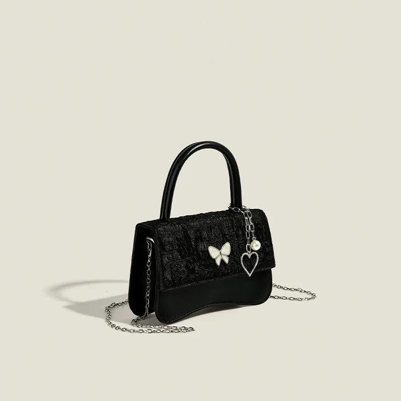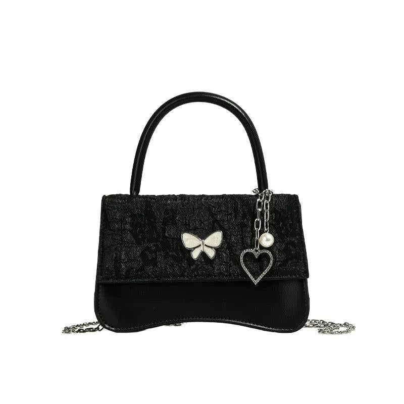 This high-grade small square bag features a butterfly design and is made of PU leather. It can be worn as a shoulder or crossbody bag for women.