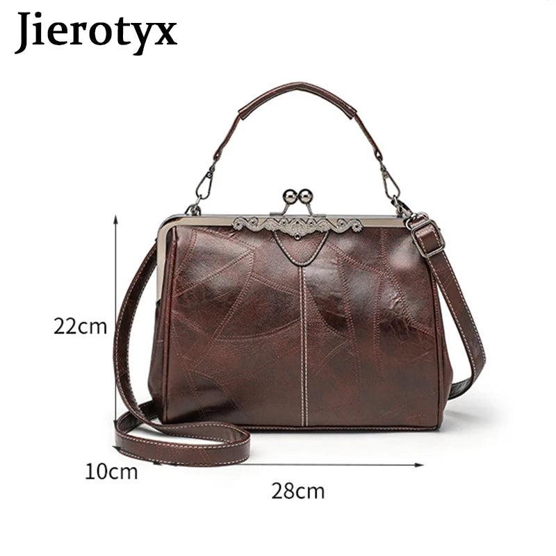 This vintage-inspired handbag is perfect for evening events. Made of high-quality oil leather, it features a kiss lock closure and a satchel design. The red color adds a pop of color to any outfit.