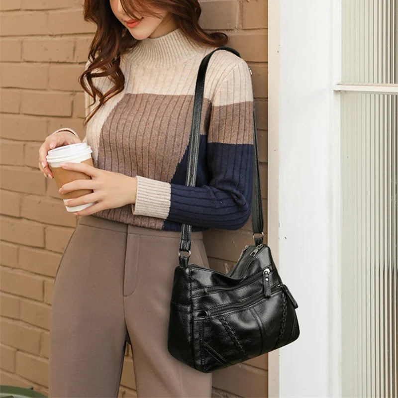 Vintage Leather Crossbody Bag Women