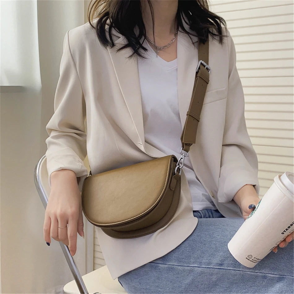 Vintage Leather Saddle Bag Women's Crossbody Bag