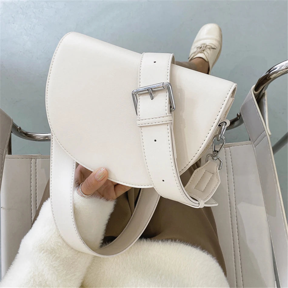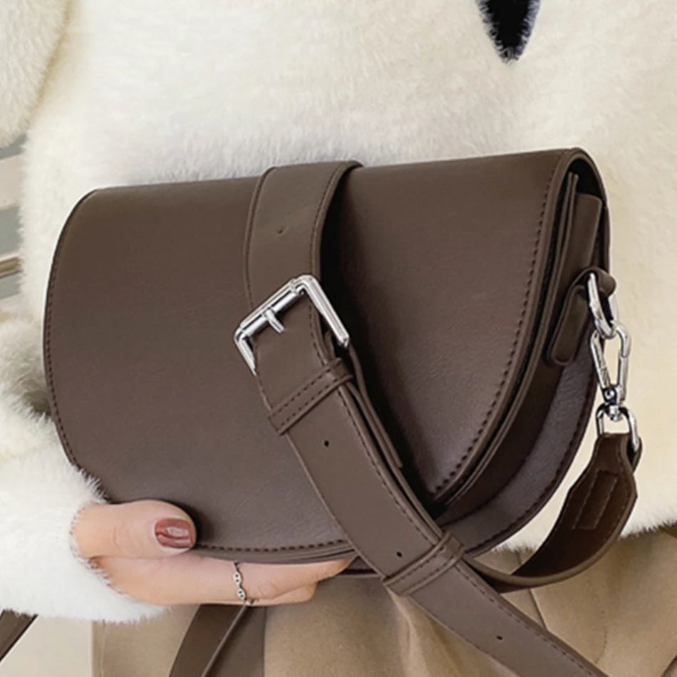 Add a touch of retro style to your look with this high-quality leather saddle bag. Perfect for carrying essentials while staying fashionable.