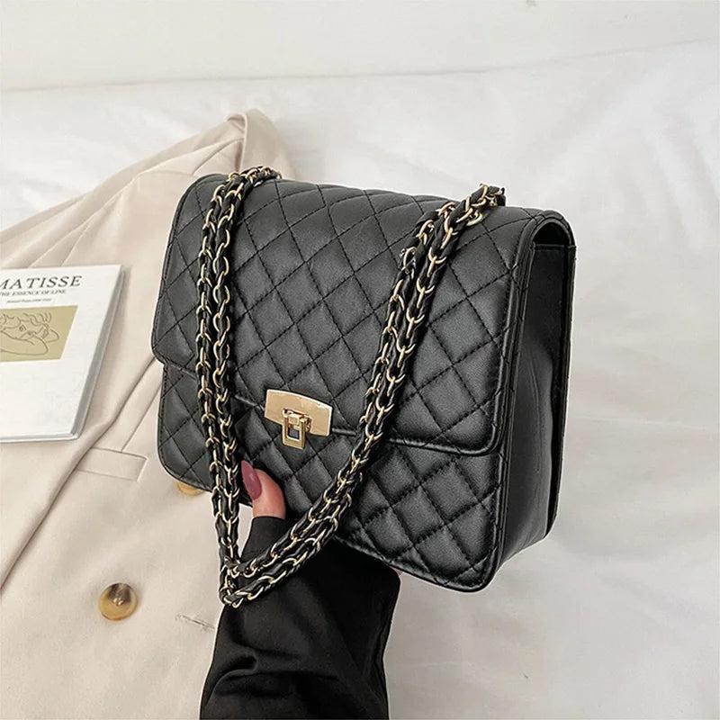 Elegant and high quality solid leather shoulder bag designed for women. Features a vintage design with a chain strap. Perfect for carrying essentials in style.