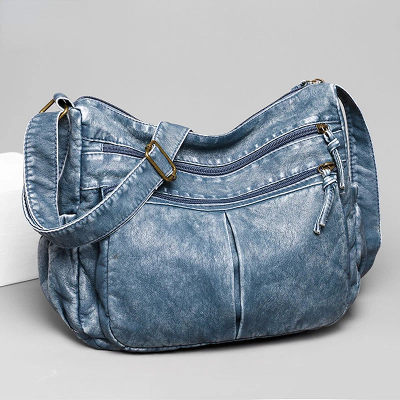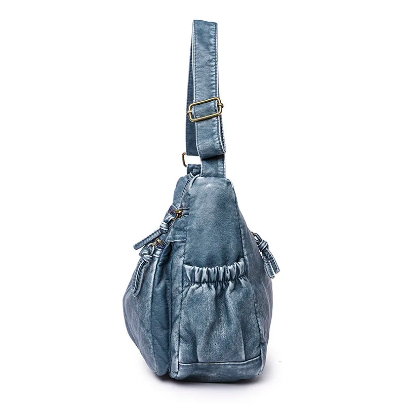 This classic shoulder bag is made of washed leather, giving it a retro and vintage look. It is perfect for everyday use and can hold all your essentials.