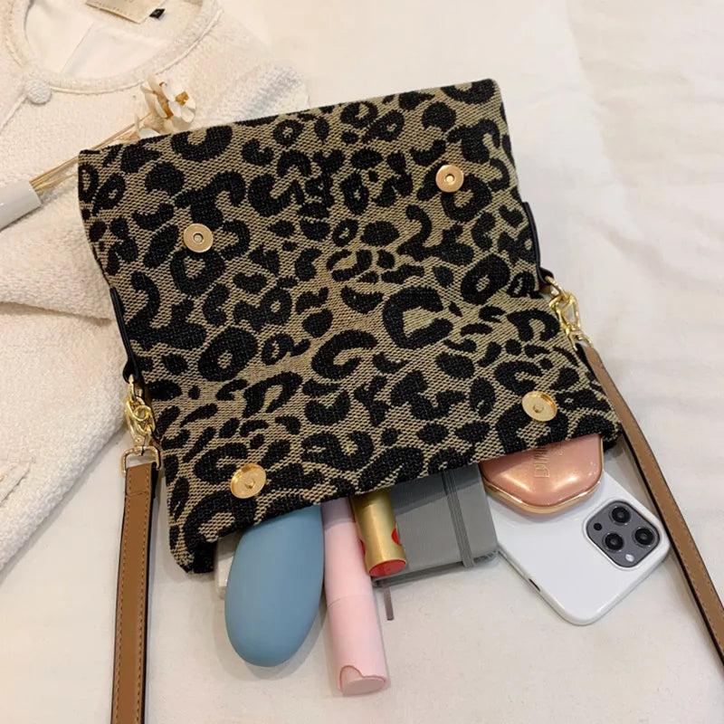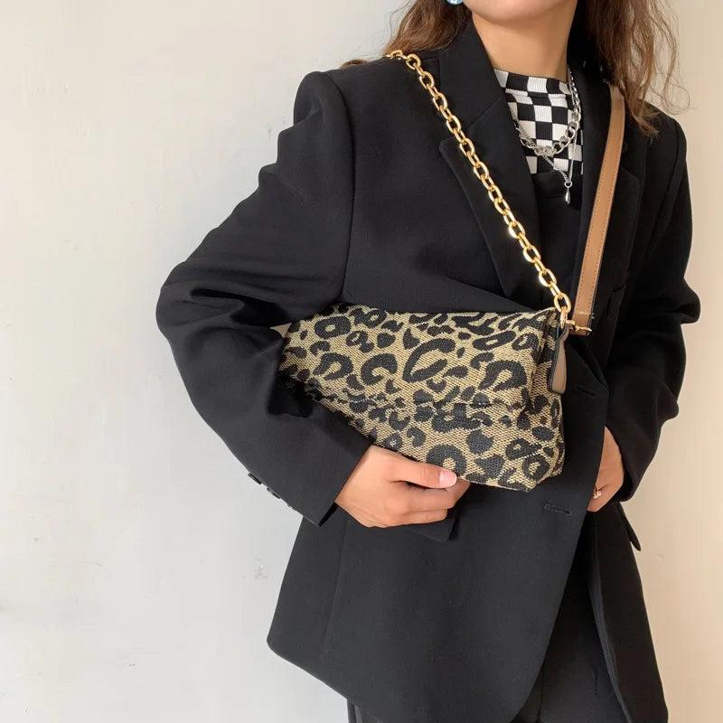 Vintage Leopard Handbags Canvas Chain Shoulder Bags Clutch