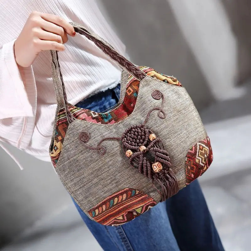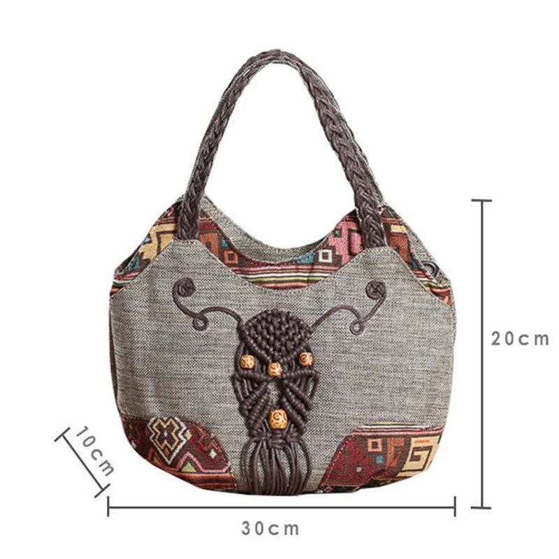 Vintage National Style Shoulder Bag Female Large Capcity Totes Bag Linen Handbag