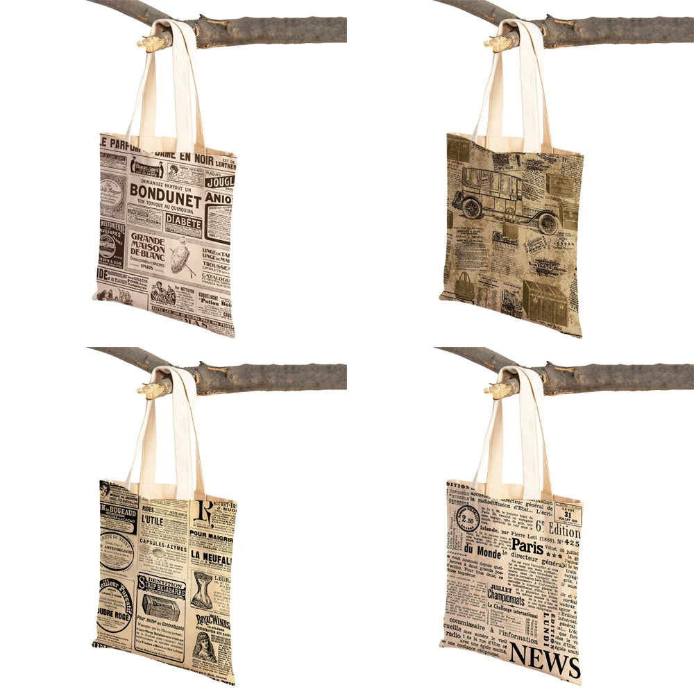 Vintage Newspaper Travel Women Shoulder Bags Canvas Lady Handbags