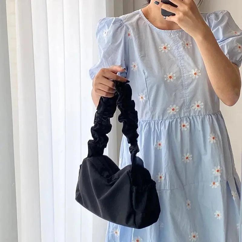 Vintage Nylon Women Purse Handbags Folds Ladies Small Shoulder Bags