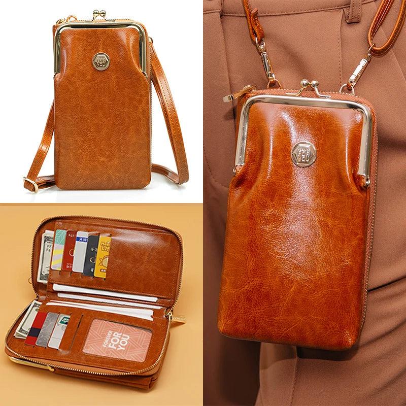 High-capacity women's wallet crossbody bag clutch made of vintage oil wax leather. Perfect for carrying your essentials in style.
